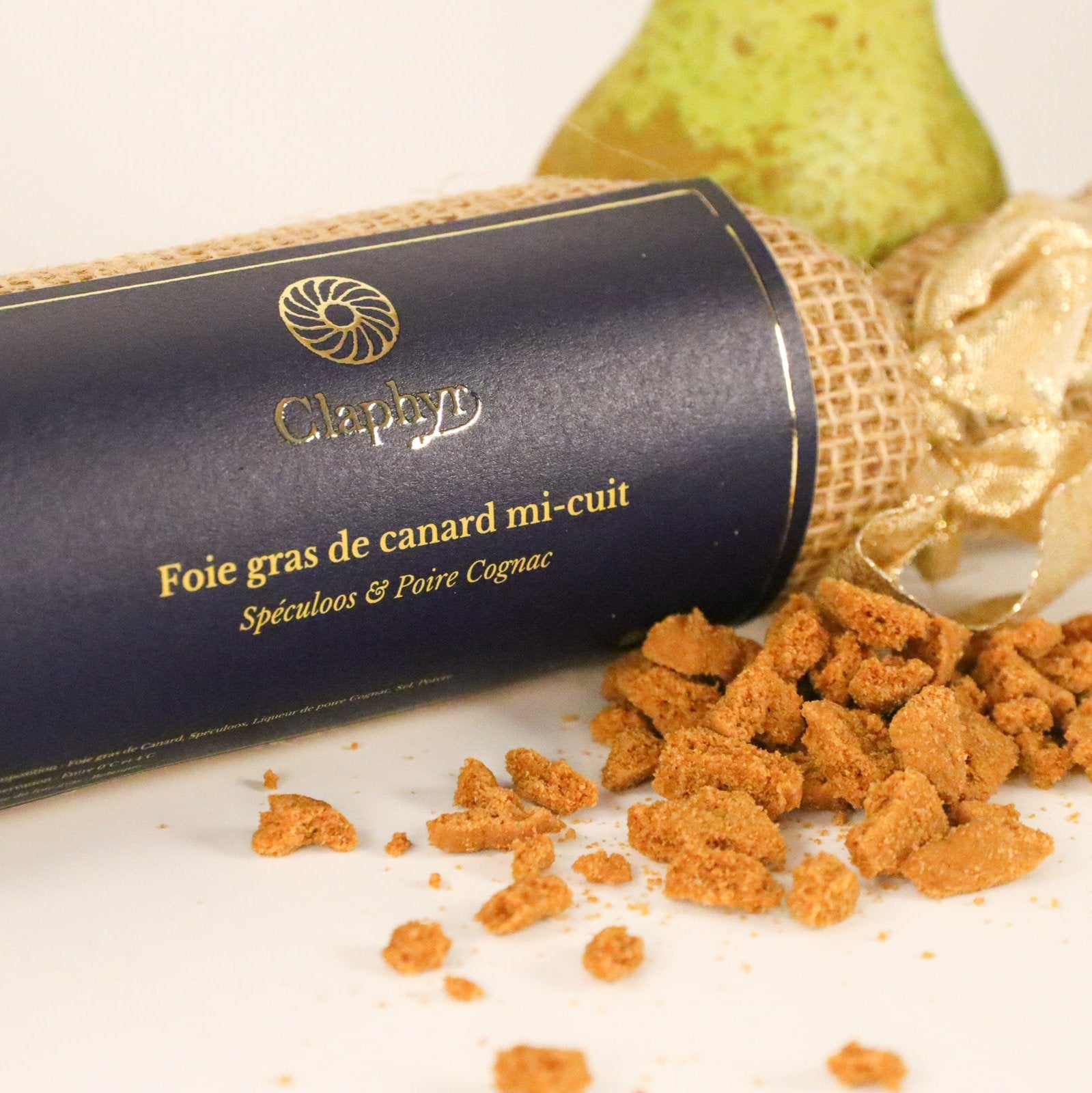 Composition : foie gras de canard, spéculoos, alcool de poire Cognac, vin blanc, sel, poivre